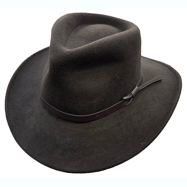 The outback style has returned to Sids! Check out the Pathfinder by American Hat Makers. This wool crushable hat has that traditional wide outback brim and a thin leather band. The perfect hat to grab and go.
