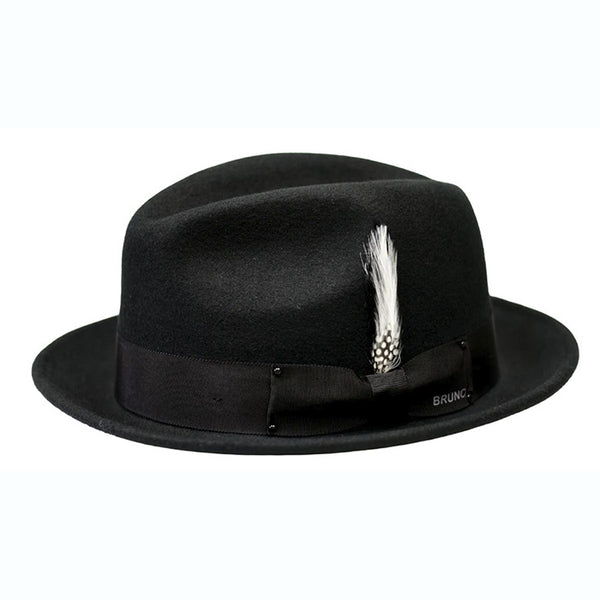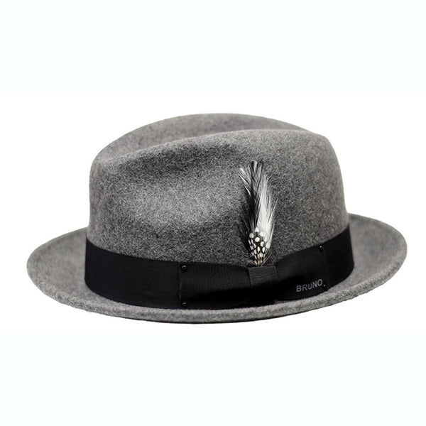 The Bruno Capelo Crown Royal is the newest in short brim fedoras. This item has a 2inch brim and 45inch brim. It's semi-crushable structure make it the perfect everyday hat or one that could be dressed up.
