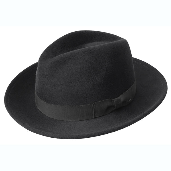 The Bailey Criss has a long teardrop crown and a snap brim. The polished wool and and grosgrain hat band, gives this hat the right amount of style and shine. This hat is fully lined and has a woven sweatband.