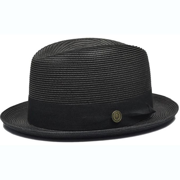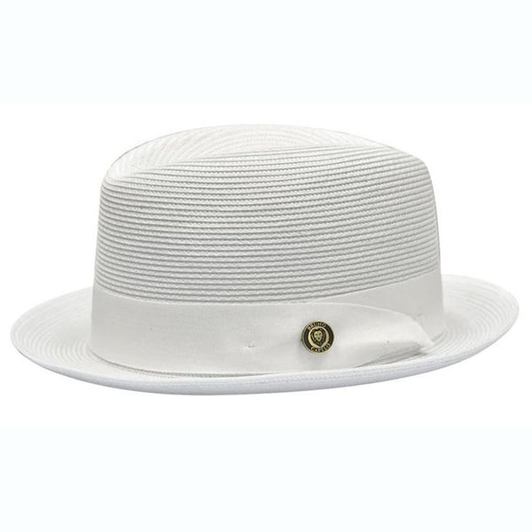 This center dent fedora creates a more modern look to the classic fedora. There is no pinch in the front of this hat. The brim is 1 7/8" and can be worn up or down.